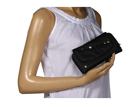 murale en métal et des détails bouton sur le rabat de la pochette.